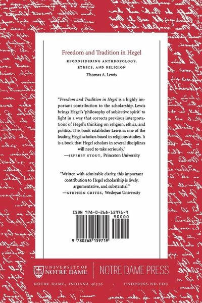 Freedom and Tradition in Hegel stands at the intersection of three vital currents in contemporary ethics: debates over philosophical anthropology and its significance for ethics, reevaluations of tradition and modernity, and a resurgence of interest in Hegel. Thomas A. Lewis engages these three streams of thought in light of Hegel's recently published Vorlesungen über die Philosophie des Geistes. Drawing extensively on these lectures, Lewis addresses an important lacuna in Hegelian scholarship by first providing a systematic analysis of Hegel's philosophical anthropology and then examining its fundamental role in Hegel's ethical and religious thought.