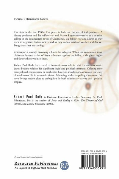 The time is the late 1940s. The place is India on the eve of independence. A history professor and his wife -- Ivar and Maren Lagerstrom -- arrive at a mission college in the southeastern town of Chinnapur. We follow Ivar and Maren as they learn to negotiate Indian society and as they endure trials of weather and disease. But graver crises are coming. Chinnapur is quickly becoming a haven for refugees. When the communist town chairman foments a riot of Koya tribesmen against the influx, a slaughter begins and throws the town into chaos. Robert Paul Roth has created a human-interest tale in which characters under duress become vehicles for significant social and political comment. Offering more than political commentary or local color, however, Freedom at Last reveals the irony of small-town life in uncertain times. Brimming with compelling characters, this novel brings readers close to ambiguities in both missionary activity and political empire.