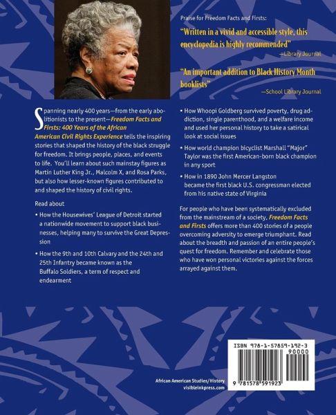 Spanning nearly 400 years from the early abolitionists to the present, Freedom Facts and Firsts: 400 Years of the African American Civil Rights Experience profiles more than 400 people, places, and events that have shaped the history of the black struggle for freedom. Covering such mainstay figures as Martin Luther King Jr., Malcolm X, and Rosa Parks as well as delving into how lesser known figures contributed to and shaped the history of civil rights, Freedom Facts and Firsts chronicles the breadth and passion of an entire people's quest for freedom. Among the inspiring stories found in this comprehensive resource are: How the Housewives' League of Detroit started a nationwide movement to support black businesses, helping many to survive the Great Depression. What effect the sports journalist Samuel Harold Lacy had on Jackie Robinson's historic entrance into the major leagues. How the 9th and 10th Calvary and the 24th and 25th Infantry became known as the Buffalo Soldiers, a term of respect and endearment. How Whoopi Goldberg survived poverty, drug addiction, single parenthood, and a welfare income and used her personal history to take a satirical look at social issues. How world champion bicyclist Marshall "Major" Taylor was the first American-born black champion in any sport. How in 1890 John Mercer Langston became the first black U.S. congressman elected from his native state of Virginia. This inspiring resource offers an encouraging look at the historic struggles and triumphs of black men and women in politics, arts, music, journalism, law, social work and sports, the authors chart a full and inspiring history of African American activism!