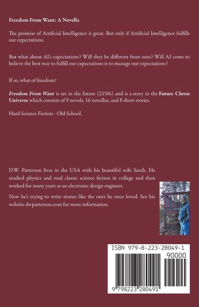 Freedom From Want: A Novella The promise of Artificial Intelligence is great. But only if Artificial Intelligence fulfills our expectations. But what about AI's expectations? Will they be different from ours? Will AI come to believe the best way to fulfill our expectations is to manage our expectations? If so, what of freedom? Freedom From Want is set in the future (2150s) and is a story in the Future Chron Universe which consists of 9 novels, 16 novellas, and 8 short stories. Hard Science Fiction - Old School.