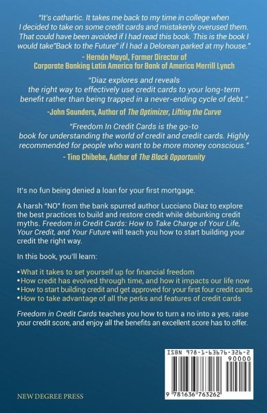 It's no fun being denied a loan for your first mortgage. A harsh "NO" from the bank spurred author, Lucciano Diaz, to explore the best practices to build and restore credit while debunking credit myths. Freedom in Credit Cards: How to Take Charge of Your Life, Your Credit, and Your Future will teach you how to start building your credit the right way. In this book, you'll learn: * What it takes to set yourself up for financial freedom * How credit has evolved through time, and how it impacts our life now * How to start building credit and get approved for your first four credit cards * How to take advantage of all the perks and features of credit cards Freedom in Credit Cards teaches you how to turn a no into a yes, raise your credit score, and enjoy all the benefits an excellent score has to offer.