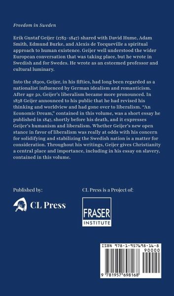 Erik Gustaf Geijer (1783-1847) shared with David Hume, Adam Smith, Edmund Burke, and Alexis de Tocqueville a spiritual approach to human existence. Geijer well understood the wider European conversation that was taking place, but he wrote in Swedish and for Swedes. He wrote as an esteemed professor and cultural luminary. Into the 1830s, Geijer, in his fifties, had long been regarded as a nationalist influenced by German idealism and romanticism. After age 50, Geijer's liberalism became more pronounced. In 1838 Geijer announced to his public that he had revised his thinking and worldview and had gone over to liberalism. "An Economic Dream," contained in this volume, was a short essay he published in 1847, shortly before his death, and it expresses Geijer's humanism and liberalism. Whether Geijer's new open stance in favor of liberalism was really at odds with his concern for solidifying and stabilizing the Swedish nation is a matter for consideration. Throughout his writings, Geijer gives Christianity a central place and importance, including in his essay on slavery, contained in this volume.
