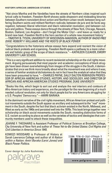 "Not since Martha and the Vandellas have the streets of Northern cities inspired such lyrical calls to freedom. Freedom North shoves aside shopworn and misleading binaries between Southern nonviolent direct action and Northern urban revolt; between longsuffering Southern saints and militant Northern radicals; between de jure and de facto segregation; between liberal reformism and black nationalist revolution; between culture and politics. These essays dance through the streets of New York, Chicago, Newark, Boston, Oakland, Los Angeles - don't forget the Motor City! - and leave us ready for a brand new beat. Freedom North is the horn section of a whole new movement history." - Timothy B. Tyson, University of Wisconsin-Madison