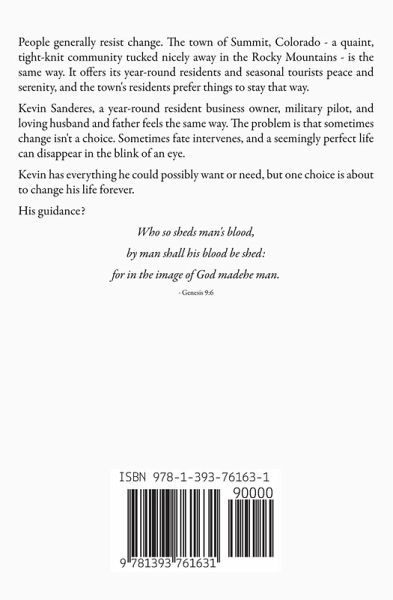 Kevin had the perfect life. A loving family, prosperous business and the serenity of the surrounding Colorado Rocky Mountains - Until that dreadful afternoon when fate shows its ugly face, forcing him into the decisiion of his life. Will he follow the law or be the law? He finds his answer in Genesis 9:6.