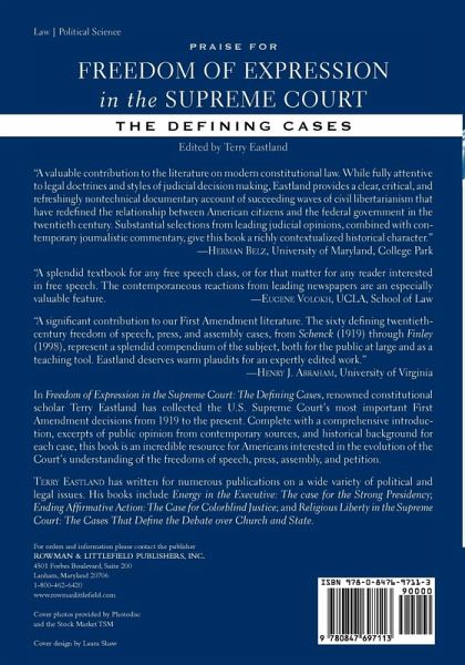 In Freedom of Expression in the Supreme Court, Terry Eastland brings together the Court's leading First Amendment cases, some 60 in all, starting with Schenck v. United States (1919) and ending with Reno v. American Civil Liberties Union (1998). Complete with a comprehensive introduction, pertinent indices and a useful bibliography, Freedom of Expression in the Supreme Court offers the general and specialized reader alike a thorough treatment of the Court's understanding on the First Amendment's speech, press, assembly, and petition clauses.