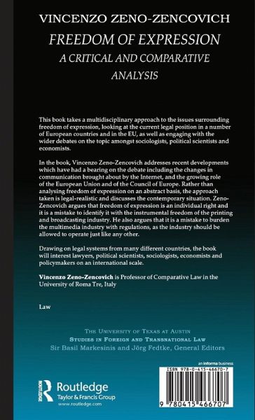 This book takes a multidisciplinary approach to the issues surrounding freedom of expression, looking at the current legal position in a number of European countries as well as engaging with the wider debates on the topic amongst sociologists, political scientists and economists. In the book Vincenzo Zeno-Zencovich addresses recent developments which have had a bearing on the debate including the changes in communication brought about by the internet, and the growing role of the European Union and the Council of Europe.