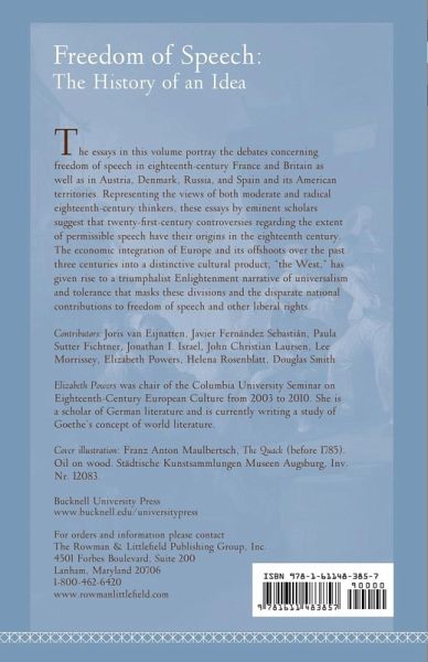 The essays in this volume portray the debates concerning freedom of speech in eighteenth-century France and Britain as well as in Austria, Denmark, Russia, and Spain and its American territories. Representing the views of both moderate and radical eighteenth-century thinkers, these essays by eminent scholars discover that twenty-fi rst-century controversies regarding the extent of permissible speech have their origins in the eighteenth century. The economic integration of Europe and its offshoots over the past three centuries into a distinctive cultural product, "the West," has given rise to a triumphant Enlightenment narrative of universalism and tolerance that masks these divisions and the disparate national contributions to freedom of speech and other liberal rights.