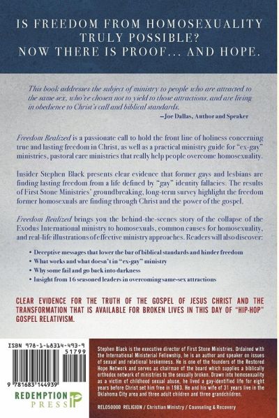 Freedom Realized is a passionate call to hold the front line of holiness concerning true and lasting freedom in Christ, as well as a practical ministry guide for "ex-gay" ministries, pastoral care ministries that really help people overcome homosexuality. Insider Stephen Black presents clear evidence that former gays and lesbians are finding lasting freedom from a life defined by "gay" identity fallacies. The results of First Stone Ministries' groundbreaking, long-term survey highlight the freedom former homosexuals are finding through Christ and the power of the gospel. Freedom Realized brings you the behind-the-scenes story of the collapse of the Exodus International ministry to homosexuals, common causes for homosexuality, and real-life illustrations of effective ministry approaches. Readers will also discover: Deceptive messages that lower the bar of biblical standards and hinder freedom What works and what doesnt in "ex-gay" ministry Why some fail and go back into darkness Insight from 16 seasoned leaders in overcoming same-sex attractions