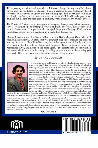Take a journey to a time, and place that will forever change the way you think about slaves, and the institution of slavery. This is a realistic fiction, historically based story that will take you to a place that existed long ago. It is a story that will make you laugh, cry, it may even make you mad, but most of all, it will make you think. Think about all that has been gained, and lost, over a period of five hundred years. The Priests of Africa were given a plan for escaping slavery, long before becoming slaves. With the help, and strength of God, and their ancestors, they attempted an escape of monumental proportions that escaped the pages of history. Find out how these slaves refused slavery, and took up arms to free themselves. Manny, learns a story of a slave rebellion, and the Black Masonic Order that will change his life forever. A story that was long lost over time, through the perilous journey of slavery. He will realize that, despite his dysfunctional family, and lack of education, his life still had hope, and purpose. Take the journey down the Mississippi River, and never be the same again. The secrets that are entwined in this novel will blow your mind away. It will grip your emotions like nothing you ever read. This is not just a story, but an adventure through time. Enjoy and God Bless!