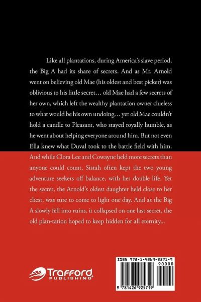 Like all plantations, during America's slave period, the Big A had its share of secrets. And as Mr. Arnold went on believing old Mae (his oldest and best picker) was oblivious to his little secret... old Mae had a few secrets of her own, which left the wealthy plantation owner clueless to what would be his own undoing... yet old Mae couldn't hold a candle to Pleasant, who stayed royally humble, as he went about helping everyone around him. But not even Ella knew what Duval took to the battle field with him. And while Clora Lee and Cowayne held more secrets than anyone could count, Sistah often kept the two young adventure seekers off balance, with her double life. Yet the secret, the Arnold's oldest daughter held close to her chest, was sure to come to light one day. And as the Big A slowly fell into ruins, it collapsed on one last secret, the old plan-tation hoped to keep hidden for all eternity...