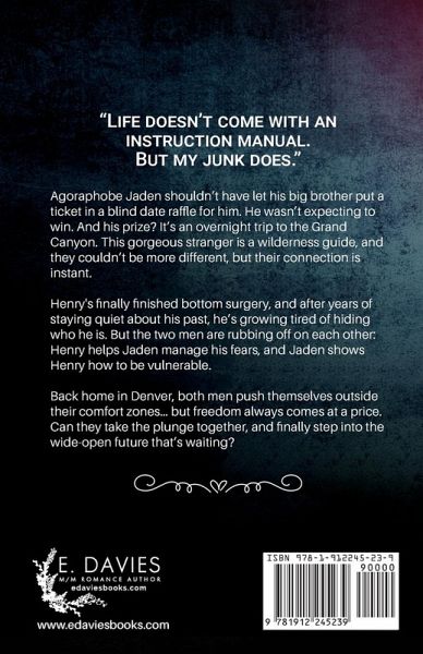 "Life doesn't come with an instruction manual. But my junk does." Agoraphobe Jaden shouldn't have let his big brother put a ticket in a blind date raffle for him. He wasn't expecting to win. And his prize? It's an overnight trip to the Grand Canyon. This gorgeous stranger is a wilderness guide, and they couldn't be more different, but their connection is instant. Henry's finally finished bottom surgery, and after years of staying quiet about his past, he's growing tired of hiding who he is. But the two men are rubbing off on each other: Henry helps Jaden manage his fears, and Jaden shows Henry…mehr