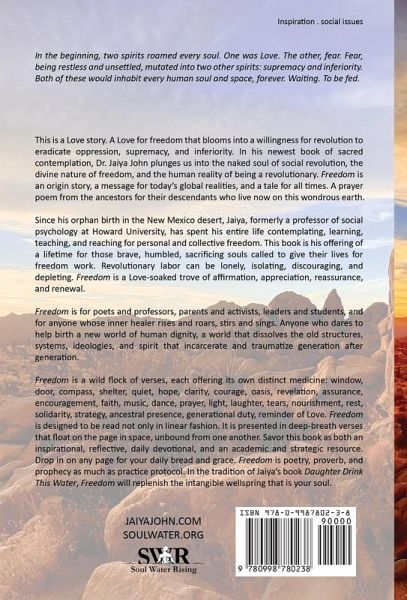 Freedom plunges us into the viral nature of social supremacy and inferiority; as well as caste systems, revolution, freedom, and being a revolutionary. Freedom is a Love-soaked trove of affirmation, inspiration, and insight.