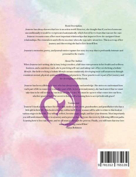 Jeanene has always known that love is an action word. However, she thought that if you loved someone unconditionally it would be reciprocated automatically, which forced her to learn that was not the case. Jeanene recounts some of her most important relationships that impacted how she navigated those relationships. She remembers and reflects on a time when she was naïve about love. This is a recap of her journey and discovering she had to love herself first. Jeanene's memories, poetry, and journal entries capture her story in a way that is deeply intimate and personal for the reader.