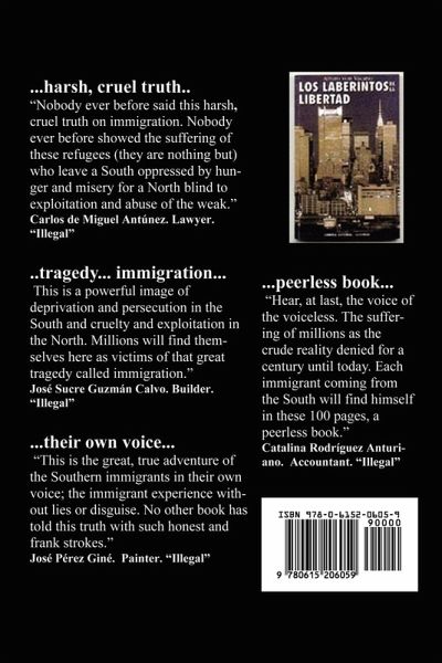 "Nobody ever before said this harsh, cruel truth on immigration. Nobody ever before showed the suffering of these refugees (they are nothing but) who leave a South oppressed by hunger and misery for a North blind to exploitation and abuse of the weak." Carlos de Miguel Antúnez. Lawyer. "Illegal"