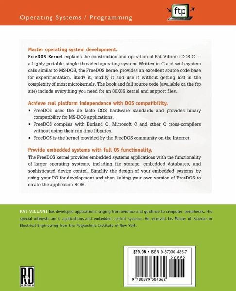 Master operation system development. FreeDOS Kernel explains the construction and operation of Pat Villani's DOS-C - a highly portable, single threaded operating system. Written in C and with system calls similar to MS-DOS, the FreeDOS kernel provides an