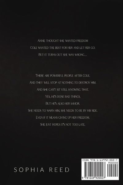 Annie thought she wanted freedom Cole wanted the best for her and let her go. But it turns out she was wrong... There are powerful people after Cole. And they will stop at nothing to destroy him. And she can't sit still knowing that. Yes, he's done bad things. But he's also her savior. She needs to warn him, she needs to be by his side. Even if it means giving up her freedom. She just hopes it's not too late.