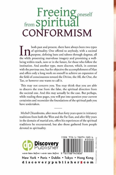 Book Summary In both past and present, there have always been two types of spirituality. One offered to anybody, with a societal purpose, defining bans and taboos through dogmas, all the while presenting marvelous imagery and promising a well-being within reach, now or in the future, for those who follow the institution. And another type, more discreet, which, in contrast with the previous one, has for objective the accomplishment of Man and offers only a long work on oneself to achieve an expansion of the field of consciousness toward the Divine, the All, the One, the Tao, or however one wants to call it. This may not concern you. You may think that you are able to discern the true from the false, the spiritual direction from the societal one. And this may actually be the case. But perhaps, while reading these pages, you will put into question your current certainties and reconsider the foundations of the spiritual path you have undertaken. Michel Chiambretto, after more than forty years spent in initiatory traditions from both the West and the Far East, and after fifty years in the domain of martial arts, offers his experiences of the spiritual traditions he encountered, but also those gathered from people devoted to spirituality. Publisher's note for the printed edition: in order to be more enjoyable during reading, this book is in 6" x 9" format. In the same spirit, the paper is cream-colored, which causes less fatigue to the eyes than white paper. All our publications are carefully crafted, both in terms of typography as well as design. Publisher's note for the Kindle edition: our Kindle publications are carefully crafted, with Table of Contents, Index, Footnotes and References when applicable. A strong emphasis has been put on the typography as well as the design. Your comments are welcome at discoverypublisher.com - Thank you for choosing Discovery Publisher.