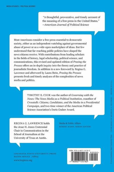 "A thoughtful, provocative, and timely account of the meaning of a free press in the United States."-American Journal of Political Science Most Americans consider a free press essential to democratic society--either as an independent watchdog against governmental abuse of power or as a wide-open marketplace of ideas. But few understand that far--reaching public policies have shaped the news citizens receive. With contributions from leading scholars in the fields of history, legal scholarship, political science, and communications, this revised and updated edition of Freeing the Presses offers an in-depth inquiry into the theory and practice of journalistic freedom. In addition to a new foreword by Regina G. Lawrence and afterword by Laura Stein, Freeing the Presses presents fresh and timely analyses of the complexities of news media and politics.