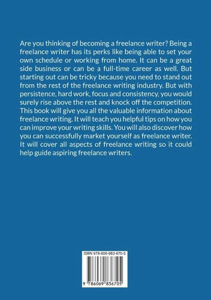 Freelance Writer: The Ultimate Guide to Successful Freelance Writing, Learn Helpful Writing Tips and Other Valuable Advice on How You Can Make Money in Freelance Writing Are you thinking of becoming a freelance writer? Being a freelance writer has its perks like being able to set your own schedule or working from home. It can be a great side business or can be a full-time career as well. But starting out can be tricky because you need to stand out from the rest of the freelance writing industry. But with persistence, hard work, focus and consistency, you would surely rise above the rest and knock off the competition. This book will give you all the valuable information about freelance writing. It will teach you helpful tips on how you can improve your writing skills. You will also discover how you can successfully market yourself as a freelance writer. It will cover all aspects of freelance writing so it could help guide aspiring freelance writers. This book will discuss the following topics: Introduction to Freelancing Building a Successful Freelance Writing Career Types of Freelance Writing Creative Writing - An Art Web Blog Writing SEO Writing Sales and Marketing Writing Newsletters and Editorial Writing Magazine Writing Ebook Writing Choosing the Right Topic - Limitations and Guidelines Realizing Your Writing Skills Inking Your Writing Skills Analyzing Your Writing Needs How to Establish Credibility Finding Freelance Writing Opportunities Freelance Writing in a Glimpse If you love to write, freelance writing can be the perfect job for you. Starting may be difficult and the first year will test you, but once you have found your rhythm and flow and you continue to be consistent and professional, everything will fall into place. If you want to learn what it takes to be a freelance writer and need a guide for the whole process of becoming one, this book is perfect for you. Scroll up and click "add to cart" now.