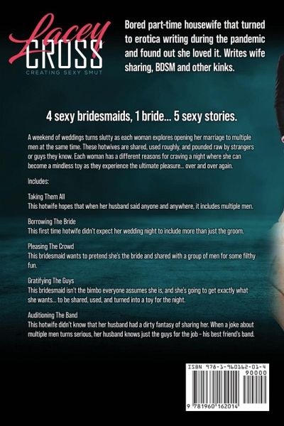 4 sexy bridesmaids, 1 bride... 5 sexy stories. A weekend of weddings turns slutty as each woman explores opening her marriage to multiple men at the same time. These hotwives are shared, used roughly, and pounded raw by strangers or guys they know. Each woman has a different reasons for craving a night where she can become a mindless toy as they experience the ultimate pleasure... over and over again. Includes: Taking Them All This hotwife hopes that when her husband said anyone and anywhere, it includes multiple men. Borrowing The Bride This first time hotwife didn't expect her wedding night to include more than just the groom. Pleasing The Crowd This bridesmaid wants to pretend she's the bride and shared with a group of men for some filthy fun. Gratifying The Guys This bridesmaid isn't the bimbo everyone assumes she is, and she's going to get exactly what she wants... to be shared, used, and turned into a toy for the night. Auditioning The Band This hotwife didn't know that her husband had a dirty fantasy of sharing her. When a joke about multiple men turns serious, her husband knows just the guys for the job - his best friend's band. These short stories contain graphic depictions of sex between consenting adults and features elements of hotwife, multiple men, and freeuse, and BDSM. Reader discretion advised.