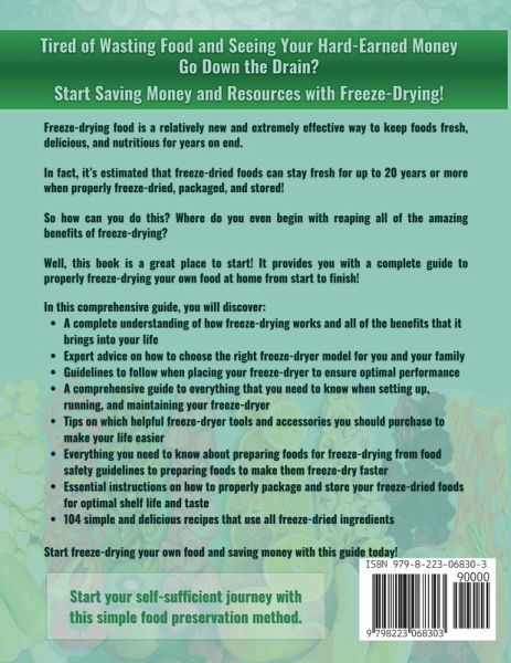 Freeze Drying Mastery For Beginners: Complete Guide to Long-Term Food Storage, Save Money, Reduce Waste and Keep Your Pantry Stocked" is the ultimate guide for anyone venturing into the innovative world of freeze drying. This book is expertly crafted for beginners, offering an in-depth look into the art and science of freeze drying, a method that has revolutionized long-term food preservation. The journey begins with an engaging introduction to the fundamentals of freeze drying, illuminating how this technique is distinctively effective compared to other food preservation methods. The book demystifies the science behind it, making it accessible and intriguing for the reader. Choosing the right equipment is crucial in freeze drying, and this guide offers comprehensive advice on selecting the best freeze dryer for your needs, covering aspects like size, affordability, and functionality. It doesn't stop there; you'll find invaluable tips on setting up and maintaining your machine to ensure optimal performance and longevity. A core section of the book is devoted to the freeze-drying process itself. Detailed, step-by-step instructions are provided, making the process approachable for a beginner. From the initial preparation of food to the final stages of storage, each phase is meticulously covered. This includes vital information on the pre-treatment of different food types and the nuances of the freeze-drying cycle. The art of choosing the right foods for freeze-drying is essential. The book provides extensive lists of foods that are ideal for this process, as well as those less suited, helping you make informed decisions and minimize waste. But it's not just about what you can freeze dry; it's also about what you can create with these ingredients. A variety of recipes and imaginative ideas for meals are included, offering culinary inspiration for utilizing your freeze-dried produce, whether for daily meals or special occasions. One of the most compelling aspects of home freeze-drying is the potential for cost savings. "Freeze Drying Mastery For Beginners" delves into a thorough cost-benefit analysis of home freeze drying versus purchasing commercial freeze-dried products. It's filled with practical tips on how to be economically savvy while making the most of your investment. A significant benefit of freeze-drying is its role in reducing food waste. The book highlights how you can preserve leftovers, seasonal bounty, and bulk purchases, contributing to a more sustainable lifestyle. In line with this, the guide provides strategies for effectively stocking your pantry with a diverse range of nutritious freeze-dried foods, ensuring you're prepared for any situation, from everyday meals to emergency scenarios. Emphasizing the importance of safety and best practices, the book covers the critical aspects of handling and storing freeze-dried foods. It ensures that readers are well-informed about maintaining the highest quality and safety standards in their freeze-drying endeavors. What sets this book apart are the real-life applications and stories of individuals who have integrated freeze-drying into their daily lives. These testimonials provide practical insights and serve as a source of inspiration, illustrating the versatile and transformative nature of freeze-drying. "Freeze Drying Mastery For Beginners" is more than just a manual; it's a comprehensive guide that combines practical advice, scientific knowledge, and creative culinary ideas. It's an essential resource for anyone interested in exploring the world of freeze drying, whether for food sustainability, economic benefits, or the sheer joy of mastering a new skill in food preservation.