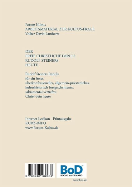 frei + christlichDer freie christliche Impuls Rudolf Steiners heuteSakramente heutePrintausgabe der Bearbeitung für das INTERNET-LEXIKON "Anthro-Wiki"Kurz-Info-Broschüre zur ThematikSiehe auch: www.Forum-Kultus.de