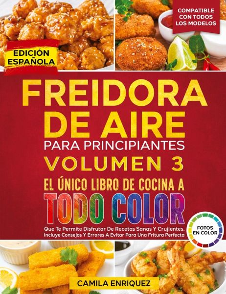 ¡HA LLEGADO EL TERCER y ÚLTIMO VOLUMEN! LIBRO ENTERAMENTE A COLOR ¿Tienes una freidora de aire y estás buscando un libro de cocina con recetas rápidas y fáciles para principiantes? ¿Te gustaría seguir comiendo tus alimentos favoritos mientras sigues a dieta? Si la respuesta es SÍ, sigue leyendo porque este libro es perfecto para ti. Con la freidora de aire puedes freír y asar alimentos utilizando muy poco (o incluso nada) de aceite, sin sacrificar por supuesto el crujiente y el sabor de los alimentos fritos. Se calcula que, la freidora de aire reduce el uso de grasas en la cocina HASTA UN 90%, lo cual es estupendo si quieres seguir disfrutando de los fritos estando a dieta. No sólo reduce el consumo de calorías, sino también el dinero ahorrado en la factura de la luz gracias a su corto tiempo de cocción y su bajo consumo. Con este libro descubrirás recetas sanas y sabrosas que te ahorrarán mucho tiempo a la hora de preparar las comidas. En este libro de cocina ENCONTRARÁS:Fotos de alta resolución y a todo color para que puedas ver el aspecto que tendrá el plato una vez preparado. Recetas sencillas y fáciles de preparar, incluso para principiantes. Tiempos de cocción precisos, número de raciones y calorías VERIFICADAS, para que no tengas que preocuparte de contarlas al final de la comida. Una lista de recetas en ORDEN ALFABÉTICO, para que ya no tengas que perder tiempo buscando entre todas las demás. A partir de ahora ya no tienes que preocuparte de qué preparar para cenar, solo abre el libro y elige entre sus numerosas recetas saludables.