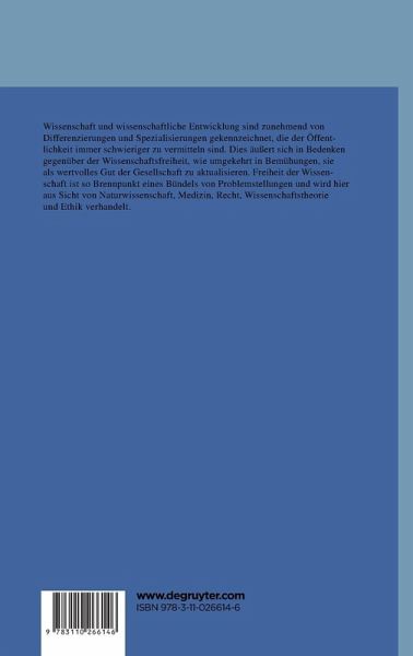 Freiheit der Wissenschaft wird in diesem Band als Brennpunkt eines ganzen Bündels von grundsätzlichen und aktuellen Problemstellungen aufgefasst, in denen es um die Stellung und Bedeutung der Wissenschaft in unserer Gesellschaft geht. Beiträge aus Naturwissenschaft, Medizin, Recht, Wissenschaftstheorie und Ethik gehen diesen Zusammenhängen nach.