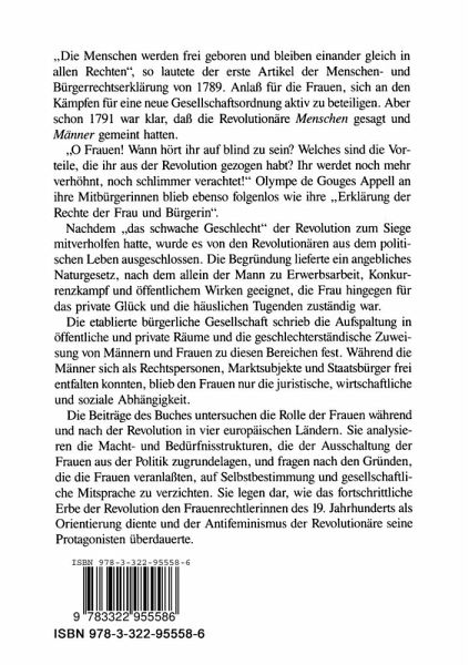 Daß die Republikaner zur Legitimierung ihres Weiblichkeitsideals Luise Otto Peters gegen die "gleichmacherischen Emanzen" der neuen Frauenbewegung ausspielen, muß diese frühe Frauenrechtlerin, die sich ausdrücklich auf die Menschen- und Bürgerrechtserklärung der Französischen Revolution berief, nicht nachträglich in Verruf brin 1 gen. Es zeigt aber, daß der Titel unseres Buches zu Mißdeutungen An laß geben könnte. Er konstruiert keinen Gegensatz zwischen dem na turrechtlich begründeten Anspruch auf Freiheit und Gleichheit für alle Menschen und einer naturgegebenen Weiblichkeit. Er stellt auch nicht den revolutionären Postulaten eine programmatische Weiblichkeit ge genüber, deren angebliche Tugenden - zu politischen Grundsätzen er hoben - das Abgleiten der Revolution in den Thrror hätte verhindern können. Der Titel ist vielmehr der Versuch, über die Umformulierung der revolutionären Devise auf drei Dinge aufmerksam zu machen, die für das Thema "Frauen und Französische Revolution" von Bedeutung sind: den Ausschluß der Frauen von den Staatsbürgerrechten, die intel lektuelle wie praktisch-politische Thilnahme von Frauen an der Revolu tion und die normative Etablierung eines bürgerlichen Weiblichkeitsi deals. Die Autorinnen des vorliegenden Bandes mögen unterschiedliche Auffassungen darüber haben, wie sich formale Anerkennung und ma terielle Durchsetzung der Gleichstellung von Männern und Frauen heute in Übereinstimmung bringen lassen. Sie teilen aber die Überzeu gung, daß es sich, nicht zuletzt im Hinblick auf die Gegenwart, lohnt, das politische Gründungsereignis der bürgerlichen Gesellschaft sowohl auf sein emanzipatorisches wie auf sein fortschritthemmendes Poten tial für die Gestaltung der Geschlechterbeziehungen zu untersuchen.