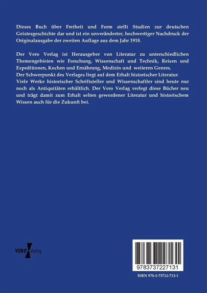 Dieses Buch über Freiheit und Form stellt Studien zur deutschen Geistesgeschichte dar und ist ein unveränderter, hochwertiger Nachdruck der Originalausgabe der zweiten Auflage aus dem Jahr 1918.
