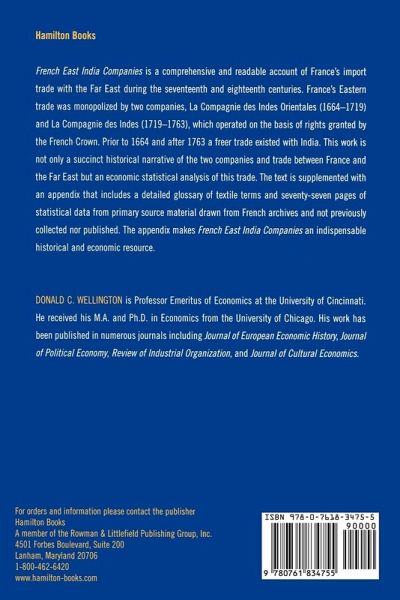 French East India Companies is a comprehensive and readable historical narrative and economic statistical analysis of France's import trade with the Far East during the 17th and 18th centuries. Supplemented with an appendix that includes a detailed glossary of textile terms and 77 pages of statistical data from French archives not previously collected nor published, French East India Companies is an indispensable historical and economic resource.