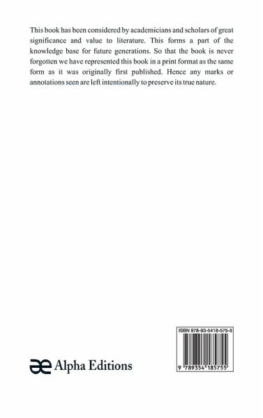 This book has been considered by academicians and scholars of great significance and value to literature. This forms a part of the knowledge base for future generations. So that the book is never forgotten we have represented this book in a print format as the same form as it was originally first published. Hence any marks or annotations seen are left intentionally to preserve its true nature.