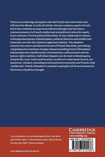 There is an enduring assumption that the French have never been and will never be liberal. As with all clichés, this contains a grain of truth, but it also overlooks an important school of thought that has been a constant presence in French intellectual and political culture for nearly three centuries: French political liberalism. In this collaborative volume, a distinguished group of philosophers, political theorists and intellectual historians uncover this unjustly neglected tradition. The chapters examine the nature and distinctiveness of French liberalism, providing a comprehensive treatment of major themes including French liberalism's relationship with republicanism, Protestantism, utilitarianism and the human rights tradition. Individual chapters are devoted to Montesquieu, Tocqueville, Aron, Lefort and Gauchet, as well as to some lesser known, yet important thinkers, including several political economists and French-style 'neoliberals'. French Liberalism from Montesquieu to the Present Day is essential reading for all those interested in the history of political thought.
