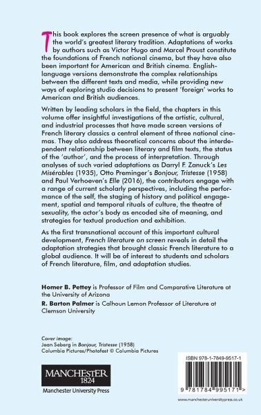 Introduction: screening French literature Homer B. Pettey and R. Barton Palmer 2 The spectacle of Monte Cristo Jennifer L. Jenkins 3 Adultery and adulteration in film versions of Flaubert's Madame Bovary Colin Davis 4 For the first time on screen together: Madame Bovary and Les Misérables in 1934 Dudley Andrew 5 The Americanization of Victor Hugo: Darryl F. Zanuck's Les Misérables (1935) Guerric DeBona 6 From heterotopia to metatopia: staging Carmen's death Phil Powrie 7 From the Recherche on film toward a Proustian cinema Steven Ungar 8 Otto Preminger's Bonjour, Tristesse: a tale of three women, if not more R. Barton Palmer 9 Adapting Pagnol and Provence Jeremy Strong 10 Maigret on screen: stardom and literary adaptation Ginette Vincendeau 11 The making and remaking of Thérèse Desqueyroux: one novel, two films Susan Hayward 12 Elle (2016), rape, and adaptation Homer B. Pettey Select bibliography