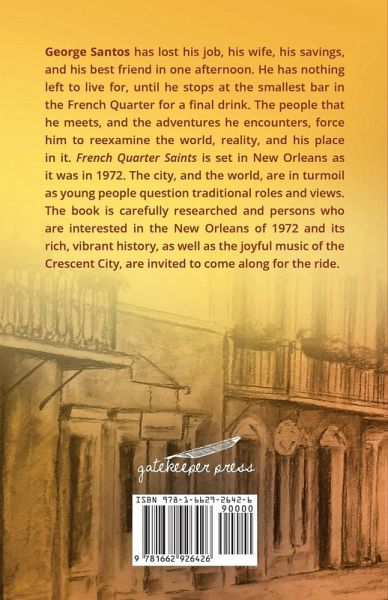George Santos has lost his job, his wife, his savings, and his best friend in one afternoon. He has nothing left to live for, until he stops at the smallest bar in the French Quarter for a final drink. The people that he meets, and the adventures he encounters, force him to reexamine the world, reality, and his place in it. French Quarter Saints is set in New Orleans as it was in 1972. The city, and the world, are in turmoil as young people question traditional roles and views. The book is carefully researched and persons who are interested in the New Orleans of 1972 and its rich, vibrant…mehr