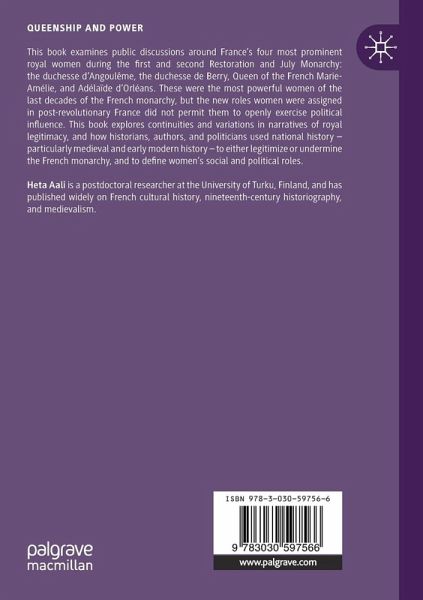 This book examines public discussions around France's four most prominent royal women during the first and second Restoration and July Monarchy: the duchesse d'Angoulême, the duchesse de Berry, Queen of the French Marie-Amélie, and Adélaïde d'Orléans. These were the most powerful women of the last decades of the French monarchy, but the new roles women were assigned in post-revolutionary France did not permit them to openly exercise political influence. This book explores continuities and variations in narratives of royal legitimacy, and how historians, authors, and politicians used national history - particularly medieval and early modern history - to either legitimize or undermine the French monarchy, and to define women's social and political roles.