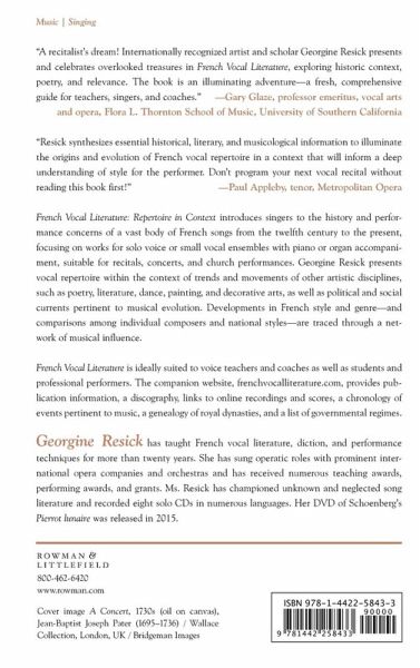 French Vocal Literature introduces singers to the history and performance concerns of a vast body of French songs from the sixteenth century to the present, focusing on songs for solo voice or small vocal ensemble with piano or organ accompaniment suitable for recital, concert, or church performance.