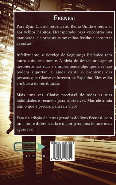 Para Ryan Chaise, retornar ao Reino Unido é retornar aos velhos hábitos. Desesperado para encontrar sua namorada, ele procura curar velhas feridas e consertar as coisas. Infelizmente, o Serviço de Segurança Britânico tem outra coisa em mente. A ideia de deixar um agente desonesto nas ruas é simplesmente algo que eles não podem suportar. E ainda existe o problema das pessoas que Chaise enfureceu na Espanha. Eles estão em busca de retribuição. Mais uma vez, Chaise precisará de todas as suas habilidades e recursos para sobreviver. Mas ele ainda tem o que é preciso para sair vivo? Esta é a edição de letras grandes do livro Frenesi, com uma fonte diferenciada e maior para uma leitura mais agradável.