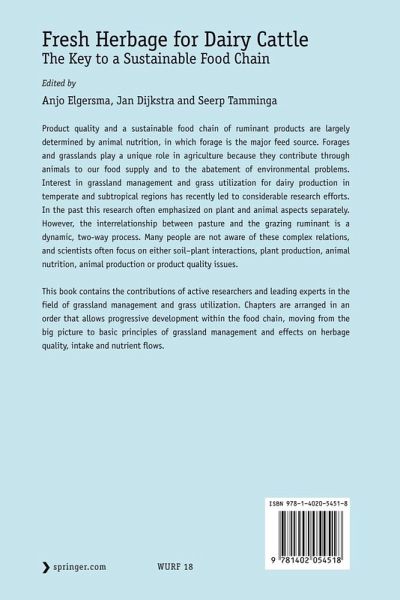Product quality and a sustainable food chain of ruminant products are largely determined by animal nutrition, in which forage is the major feed source. Forages and grasslands play a unique role in agriculture because they contribute through animals to our food supply and to the abatement of environmental problems. Interest in grassland management and grass utilization for dairy production in temperate and subtropical regions has recently led to considerable research efforts. In the past this research often emphasized on plant and animal aspects separately. However, the interrelationship between pasture and the grazing ruminant is a dynamic, two-way process. Many people are not aware of these complex relations, and scientists often focus on either soil-plant interactions, plant production, animal nutrition, animal production or product quality issues.