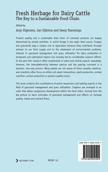 Product quality and a sustainable food chain of ruminant products are largely determined by animal nutrition, in which forage is the major feed source. Forages and grasslands play a unique role in agriculture because they contribute through animals to our food supply and to the abatement of environmental problems. Interest in grassland management and grass utilization for dairy production in temperate and subtropical regions has recently led to considerable research efforts. In the past this research often emphasized on plant and animal aspects separately. However, the interrelationship between pasture and the grazing ruminant is a dynamic, two-way process. Many people are not aware of these complex relations, and scientists often focus on either soil-plant interactions, plant production, animal nutrition, animal production or product quality issues.