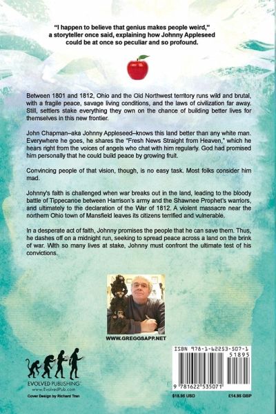 In a desperate act of faith, Johnny Appleseed promises the people that he can save them. Thus, he dashes off on a midnight run, seeking to spread peace across a land on the brink of war. With so many lives at stake, Johnny must confront the ultimate test of his convictions. WINNER: Pinnacle Book Achievement Award - Summer 2018 - Best Novel "I happen to believe that genius makes people weird," a storyteller once said, explaining how Johnny Appleseed could be at once so peculiar and so profound. Between 1801 and 1812, Ohio and the Old Northwest territory runs wild and brutal, with a fragile peace, savage living conditions, and the laws of civilization far away. Still, settlers stake everything they own on the chance of building better lives for themselves in this new frontier. John Chapman-aka Johnny Appleseed-knows this land better than any white man. Everywhere he goes, he shares the "Fresh News Straight from Heaven," which he hears right from the voices of angels who chat with him regularly. God had promised him personally that he could build peace by growing fruit. EVOLVED PUBLISHING PRESENTS an adult story of one of America's endearing historical figures: Johnny Appleseed, from the author of the hilarious "Holidazed" series of holiday satires.