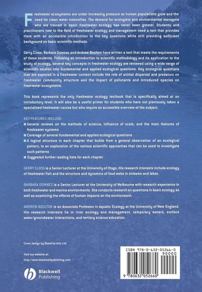 "...Freshwater Ecology is a readable and well though outintroductory text suitable for a non-major course in freshwaterecology...It clearly fills a void in the array of freshwaterecology texts and will undoubtedly be well received by students asa primary introduction to the fascinating world of freshwaterecological research." Hydrobiologia