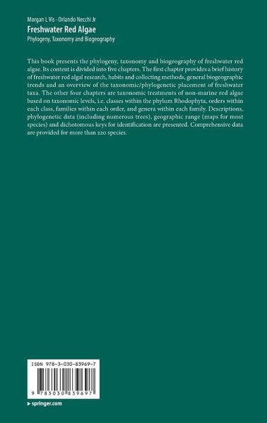 This book presents the phylogeny, taxonomy and biogeography of freshwater red algae. Its content is divided into five chapters. The first chapter provides a brief history of freshwater red algal research, habits and collecting methods, general biogeographic trends and an overview of the taxonomic/phylogenetic placement of freshwater taxa. The other four chapters are taxonomic treatments of non-marine red algae based on taxonomic levels, i.e. classes within the phylum Rhodophyta, orders within each class, families within each order, and genera within each family. Descriptions, phylogenetic data (including numerous trees), geographic range (maps for most species) and dichotomous keys for identification are presented. Comprehensive data are provided for more than 220 species.