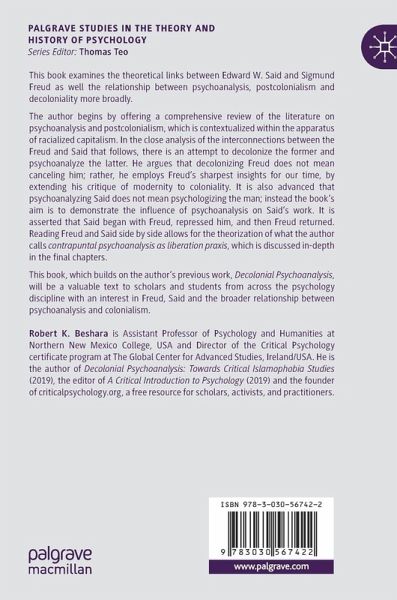 The author begins by offering a comprehensive review of the literature on psychoanalysis and postcolonialism, which is contextualized within the apparatus of racialized capitalism. In the close analysis of the interconnections between the Freud and Said that follows, there is an attempt to decolonize the former and psychoanalyze the latter. He argues that decolonizing Freud does not mean canceling him; rather, he employs Freud's sharpest insights for our time, by extending his critique of modernity to coloniality. It is also advanced that psychoanalyzing Said does not mean psychologizing the man; instead the book's aim is to demonstrate the influence of psychoanalysis on Said's work. It is asserted that Said began with Freud, repressed him, and then Freud returned. Reading Freud and Said sidebyside allows for the theorization of what the author calls contrapuntal psychoanalysis as liberation praxis, which is discussed in-depth in the final chapters.