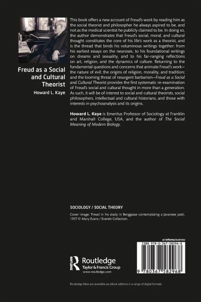 This book offers a new account of Freud's work by reading him as the social theorist and philosopher he always aspired to be, and not as the medical scientist he publicly claimed to be. In doing so, the author demonstrates that's Freud's social, moral, and cultural thought constitutes the core of his life's work as a theorist, and is the thread that binds his voluminous writings together: from his earliest essays on the neuroses, to his foundational writings on dreams and sexuality, and to his far-ranging reflections on art, religion, and the dynamics of culture. Returning to the fundamental questions and concerns that animate Freud's work - the nature of evil; the origins of religion, morality, and tradition; and the looming threat of resurgent barbarism - Freud as a Social and Cultural Theorist provides the first systematic re-examination of Freud's social and cultural thought in more than a generation. As such, it will be of interest to social and cultural theorists, social philosophers, intellectual and cultural historians, and those with interests in psychoanalysis and its origins.