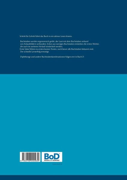 Schritt für Schritt führt das Buch in ein aktives Lesen hinein. Buchstaben werden ergonomisch geübt, der Laut mit dem Buchstaben anhand von Anlautbildern verbunden. Schon aus wenigen Buchstaben entstehen die ersten Wörter, die auch im weiteren Verlauf wiederholt werden.Erste Sätze führen zu ersten kurzen Texten, noch bevor alle Buchstaben bekannt sind. Der schnelle Lernerfolg ermutigt. Diphthonge und andere Buchstabenkombinationen folgen erst in Buch 2!Die einfallsreichen Zeichnungen von Daniel Neika ergänzen und beleben das Ganze.
