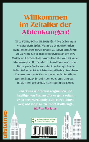 Es ist der Sommer 2015, und für Alice Quick steht viel auf dem Spiel. Sie ist fast 30 Jahre alt, trauert um ihre kürzlich verstorbene Mutter, kommt kaum als Nanny über die Runden und wurde gerade aus ihrer Wohnung geworfen. Wenn sie es nur endlich schaffen würde, ihren Traum zu leben und Ärztin zu werden. Doch die Welt ist voller Ablenkungen. Ihr Bruder - ein millionenschwerer Start-up-Gründer - entdeckt seine spirituelle Seite. Seine perfekte Südstaaten-Ehefrau hat einen Zusammenbruch. Und Alices chaotische Mitbewohnerin Roxie ist auf Abenteuer aus. Und dann ist da noch die größte Ablenkung: die Liebe.