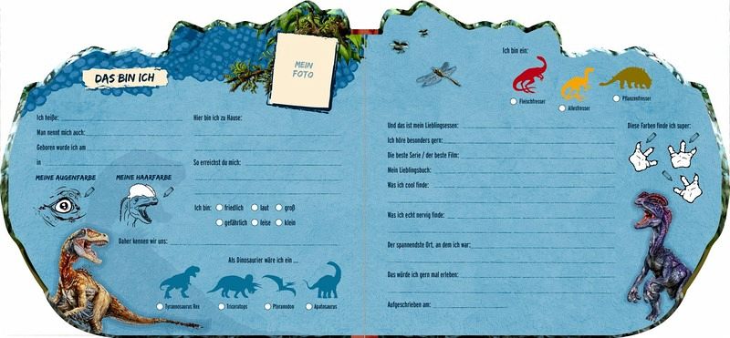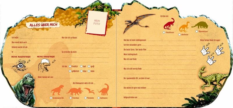 Dieses einzigartige T-Rex-Freundebuch begeistert alle kleinen Dino-Fans! 41 Freundinnen und Freunde können sich auf den beeindruckend illustrierten Seiten verewigen. Das konturgestanzte Hardcover in T-Rex-Kopf-Form mit Metallicfolie macht dieses Buch zu einem echten Hingucker.