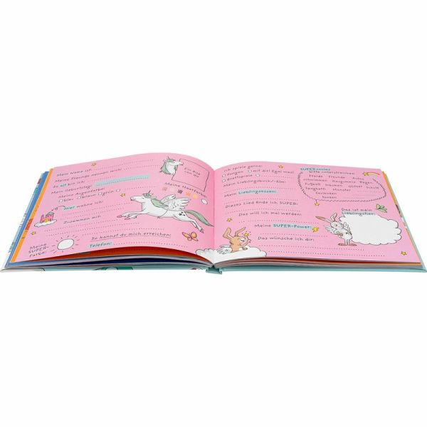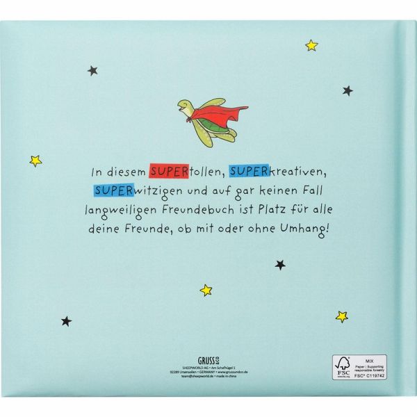 Das Freundebuch "Meine Superfreunde" im Hardcover-Format bietet ganz viel Platz zum Schreiben, Ankreuzen, Ausmalen und Unterstreichen. Mit eigener Seite für den Besitzer oder die Besitzerin des Buchs und vier verschieden designten Doppelseiten für Mädchen und Jungs umfasst es insgesamt 65 Doppeltseiten.