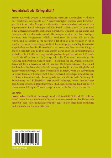 Bereits ein wenig Organisationserfahrung lehrt: Am Arbeitsplatz wird nicht nur gearbeitet. Angesichts der Allgegenwärtigkeit persönlicher Beziehungen fällt jedoch der Mangel an theoretisch trennscharfen und empirisch angemessenen Beschreibungen auf. Der Band schließt diese Lücke anhand eines differenzierungstheoretischen Vorgehens, wodurch Kollegialität und Freundschaft als distinkte soziale Ordnungen sichtbar werden: Kollegen erwarten wie Vorgesetzte lediglich konformes Handeln. Ob man die Anweisung tatsächlich gerne ausführt oder ob man dem Kollegen wirklich von Herzen zum Geburtstag gratuliert, kann hingegen nicht legitimerweise eingefordert werden. Im Unterschied dazu erwarten Freunde eine Kongruenz von Handeln und Erleben und dürfen daran auch im Enttäuschungsfall festhalten. Mit Hilfe der zugrundeliegenden Begriffsarbeit wird Freundschaft identifizierbar als (zu) anspruchsvolle Kommunikationsform, die vielfältig zum Problem werden kann - nicht nur für die Organisation, sondernauch für die (vermeintlichen) Freunde. Die Studie fokussiert hierzu auf das Problem der Freundschaftsanbahnung aus der Sicht eines Mitglieds und beantwortet die Frage, welchen Unterschied es macht, wenn die Anbahnung in einem formalen Kontext statt findet. Anhand vielfältiger und detaillierter Sekundäranalysen wird herausgearbeitet, wie die formale Ordnung die Zurechnung auf Kollegialität strukturell nahelegt, ohne Freundschaft damit auszuschließen. Damit liefert die Studie einen spannenden Blick auf ein bisher vernachlässigtes Thema, das gerade auch für Praktiker relevant ist.